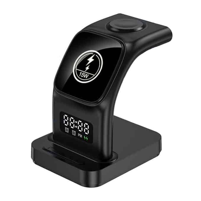 A quality charging solution with an excellent multifunctional design. Can be used to charge your Apple Watch, iPhone & EarPods at once. And also works as a night light & alarm clock!